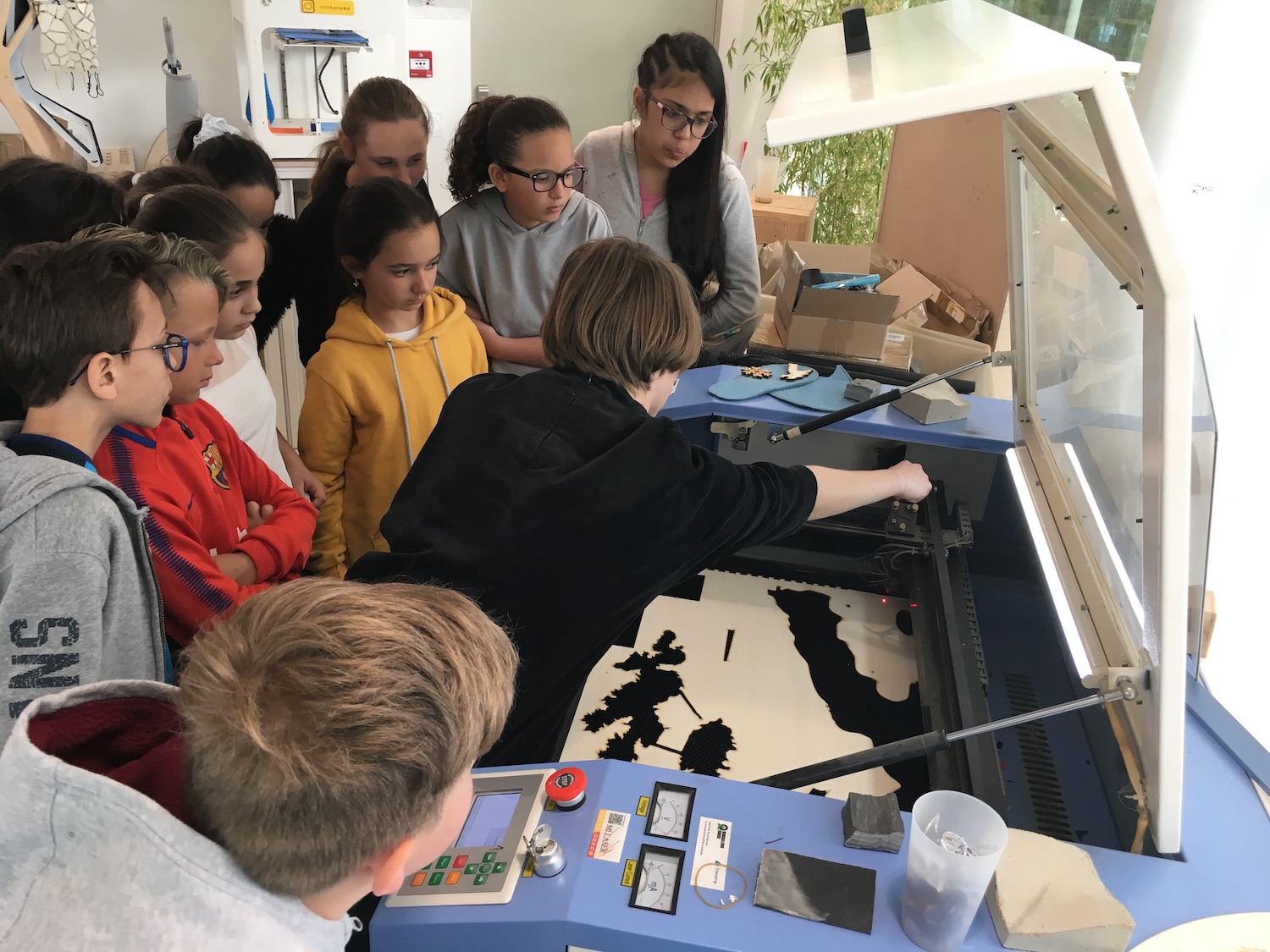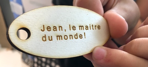 Regardez le badge réalisé au fablab ICI thecamp. Les CM2 de l'école Lucie Aubrac (Gardanne) du projet reCreation Lab ont gravé et découpé ce porte-clé en bois pour leur gentil maître !