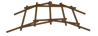 Le pont de Léonard doit sa stabilité uniquement au frottement entre les différents éléments de construction posés les uns sur les autres. Si une pression est exercée sur le pont, la force de frottement augmente également : le pont se stabilise donc encore en cas de charge – la charge maximale est toutefois limitée par la force du matériau de construction.